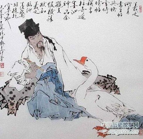 书圣王羲之很喜欢鹅,他认为养鹅不仅能陶冶情操,还能从观察鹅的动作形态中悟到一些书法理论。有一次王羲之出外游玩,看到一群很漂亮的白鹅,便想买下,一问之下知道这些鹅是附近一个道士养的,便找到那个道士想与他商量买下那群鹅,那个道士听说大名鼎鼎的王羲之要买,便说:只要王右军能为我抄一部《黄庭经》,便将拿些鹅送给他,王羲之欣然答应,这便成就了书成换白鹅的佳话。